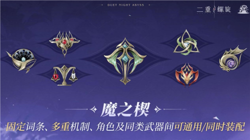 二游的核心玩法之一是養(yǎng)成,養(yǎng)成則繞不開對(duì)隨機(jī)詞條的強(qiáng)化。市面上許多產(chǎn)品都采用了隨機(jī)詞條拉長玩家的養(yǎng)成周期,期間也勢必會(huì)浪費(fèi)玩家很多時(shí)間成本,這也是導(dǎo)致大家都覺得二游過肝或者正反饋不強(qiáng)的主要原因。為了區(qū)別于傳統(tǒng)二游里的同質(zhì)化養(yǎng)成套路,《二重螺旋》在養(yǎng)成玩法上做了減法,其核心養(yǎng)成系統(tǒng)——魔之楔,采用了固定詞條設(shè)計(jì),玩家強(qiáng)化升級(jí)再也不用賭詞條,所見即所得。而且不同角色、武器均可以配備同一套魔之楔,為玩家大大降低養(yǎng)成消耗的時(shí)間成本。