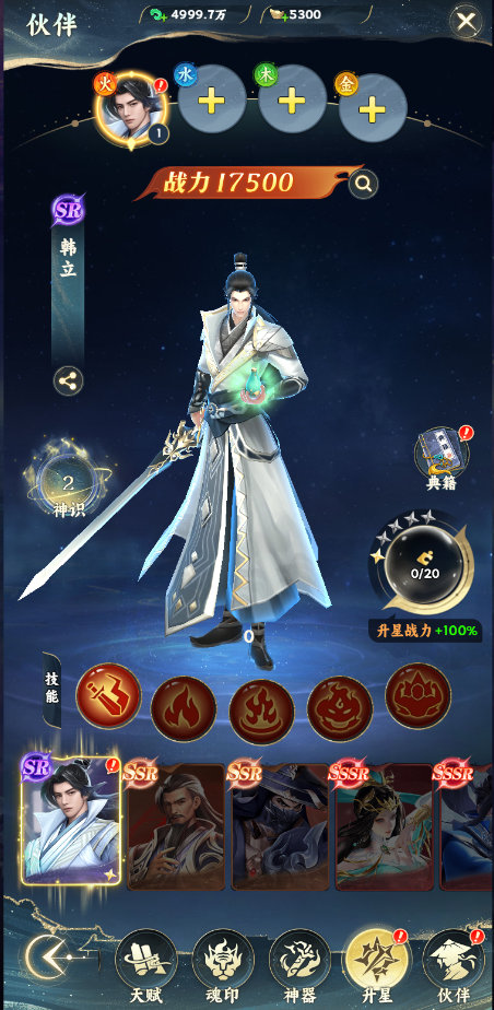 玩家獲得一定數(shù)量的伙伴碎片后可以對(duì)伙伴進(jìn)行升星,升星會(huì)激活伙伴獨(dú)有的被動(dòng)技能,同時(shí)會(huì)大幅度提升伙伴的戰(zhàn)斗力,獨(dú)有被動(dòng)技能只有在對(duì)應(yīng)伙伴上陣時(shí)才會(huì)生效。SSSR品質(zhì)伙伴升星后還會(huì)獲得天賦點(diǎn)。