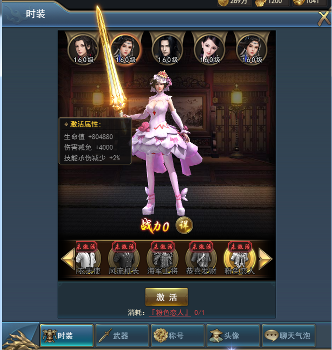 打開界面后玩家可預(yù)覽時裝的造型以及激活后附加的屬性