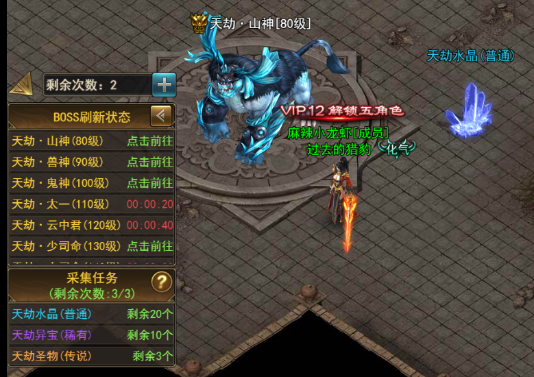 每個VIP BOSS每日只能挑戰(zhàn)一次,每日5點(diǎn)將重置可挑戰(zhàn)的最高等級的兩個VIPBOSS挑戰(zhàn)次數(shù)。