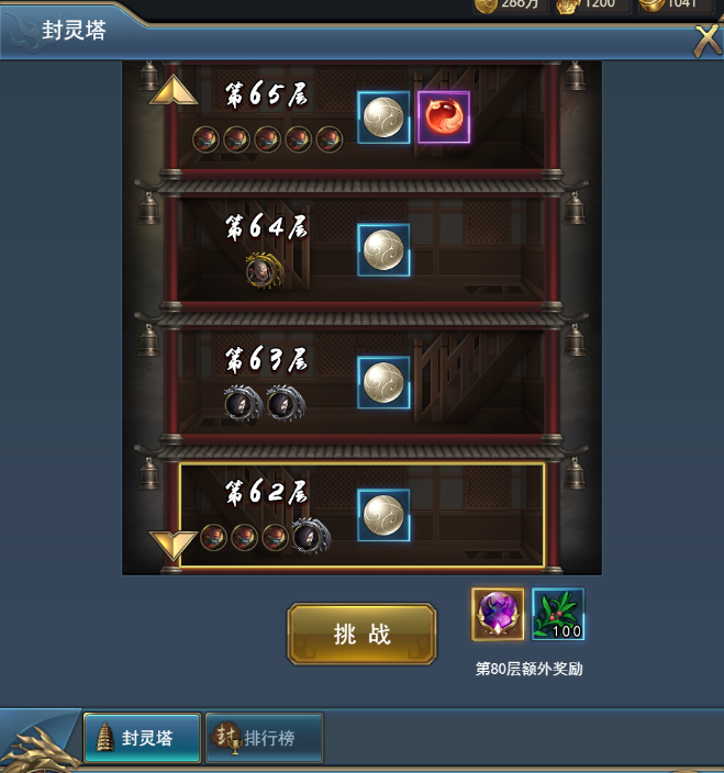 封靈塔從主城進(jìn)入,爬塔式玩法,從第一層開始向后挑戰(zhàn),只要通關(guān)成功就可以繼續(xù)挑戰(zhàn)下一關(guān)。通關(guān)獎勵可以提升角色屬性的屬性丹,以及提升“境界系統(tǒng)”的必備材料“封靈丹”。
