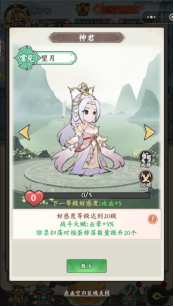 神君功能開放后可以直接解鎖一個(gè)神君,這個(gè)直接解鎖,把好感度道具全部贈送就行了,可以增加大量戰(zhàn)斗力,同時(shí)還有額外的特殊效果,升完級后記得切磋哦,還可以獲得獎(jiǎng)勵(lì)