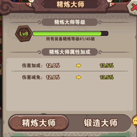 ⑶精煉:需要精煉礦來(lái)提升,精煉礦可在歷練(過(guò)關(guān)戰(zhàn)將)獲得,也可在52級(jí)的天命商店購(gòu)買(mǎi),氪老可以在福利禮包購(gòu)買(mǎi);精煉大師是每一個(gè)裝備的精煉等級(jí),達(dá)到要求的等級(jí)能提升屬性加成