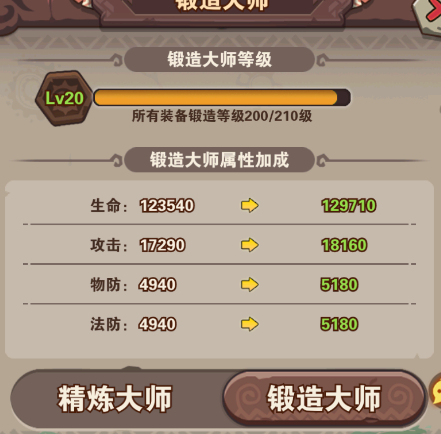 ⑷鍛造:需要鐵礦來(lái)強(qiáng)化裝備,也可跟精煉礦一樣在歷練(過(guò)關(guān)戰(zhàn)將)獲得,也可在52級(jí)的天命商店購(gòu)買(mǎi),氪老可以在福利禮包購(gòu)買(mǎi);鍛造大師是所有強(qiáng)化裝備的總等級(jí),達(dá)到也能提升屬性。