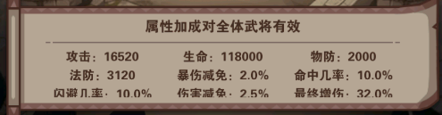 圣物:也是不需要等級(jí)就開(kāi)放的,分別有橙色與紅色品質(zhì)的圣物,每個(gè)圣物的屬性都不一樣,有經(jīng)驗(yàn)加成的(如洛神賦、太平要術(shù))、有武將提示傷害(諸葛連弩)、有減傷的(昊天塔)等等;每個(gè)圣物也有不一樣的被動(dòng)屬性,也有圣物共鳴加成;另外圣物屬性也是對(duì)全體武將生效;