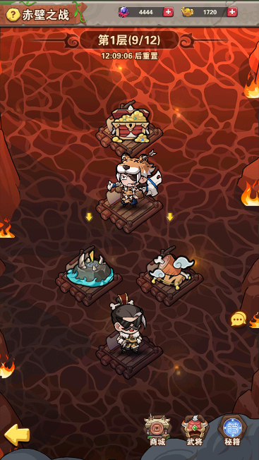 玩法可獲取赤壁戰(zhàn)功,進階石和招募卷軸。赤壁戰(zhàn)功可兌換武將碎片,根據所玩的陣容兌換所需要的陣營碎片。每層都會有增益buff,和復活武將以及恢復武將血量,武將選擇