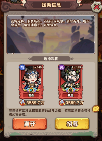 援助武將,往往比自己帶的武將弱一點,低戰(zhàn)力的可根據自身陣容選武將援助,可以更輕松的通過拿到獎勵