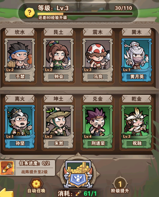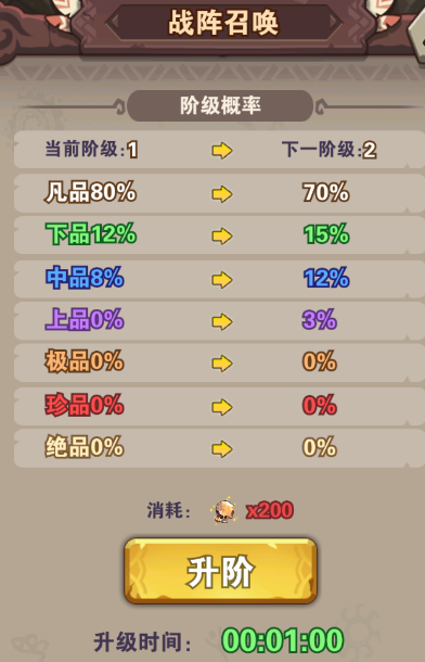 戰(zhàn)陣為擊鼓小玩法,通過擊鼓獲得戰(zhàn)陣以提升屬性;同時(shí)通過升階鼓,可以獲得更高階的戰(zhàn)陣,當(dāng)然更高級(jí)的戰(zhàn)陣帶來的提升也是更大的