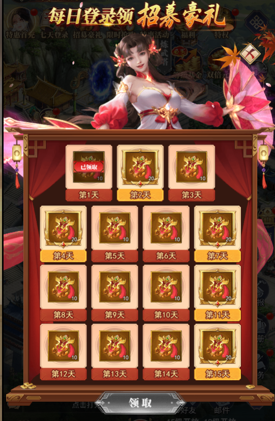 3、招賢令特權(quán):每日領(lǐng)取高級(jí)招募令*5