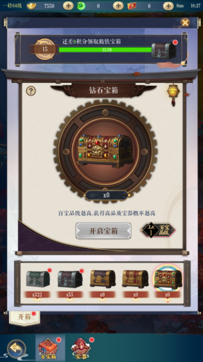 闖關可免費獲得寶箱,每個寶箱含有若干充值卡、珍稀道具、寶器