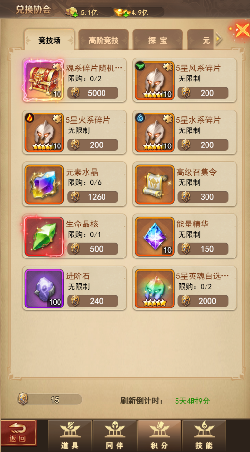 用于升級同伴/裝備等、商城購買等