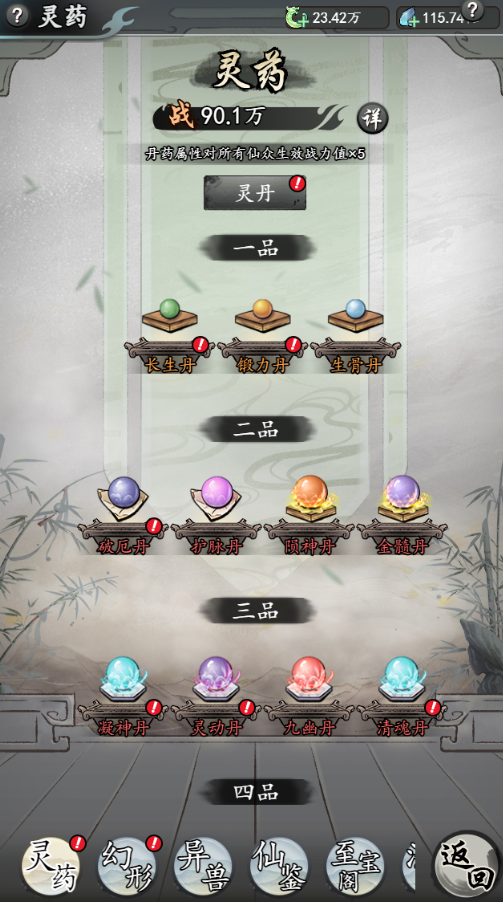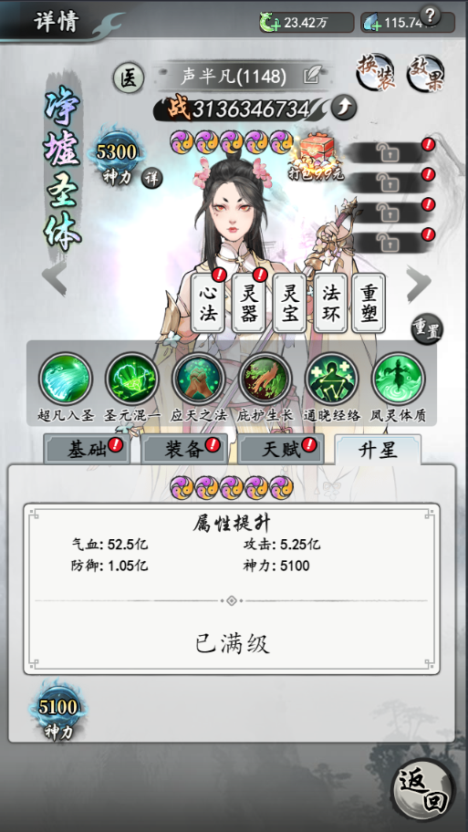 資質(zhì)系統(tǒng),這里的資質(zhì)除了常規(guī)的天命外還包含了靈藥系統(tǒng)和天賦系統(tǒng),游戲內(nèi)的資質(zhì)是可以進(jìn)行洗練的,除此之外還可以通過吞噬靈丹或者天才地寶來為主角提升永久的屬性。游戲內(nèi)的天賦會(huì)順著主角的進(jìn)階慢慢的提升,其中的過程就相當(dāng)于修仙小說中的修真廢材通過一步步的考驗(yàn)變?yōu)樯瞎牌娌乓粯?。除此之外游戲?nèi)的境界同樣也是對(duì)照修仙小說一比一還原的,戰(zhàn)力也會(huì)隨著境界的提升慢慢的增加,所以前期想要提升戰(zhàn)力突破境界是必不可少的。