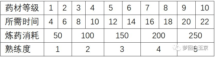 藥材等級、種植時間和熟練度見表。Tips:快速提升等級可以只種最高的單數等級,藥童等級高了,低級藥(1-4)秒種秒收。主角剩的藥,給醫(yī)嗑,不過攻擊藥可以給戰(zhàn)士,醫(yī)只需要生命和防御藥。
