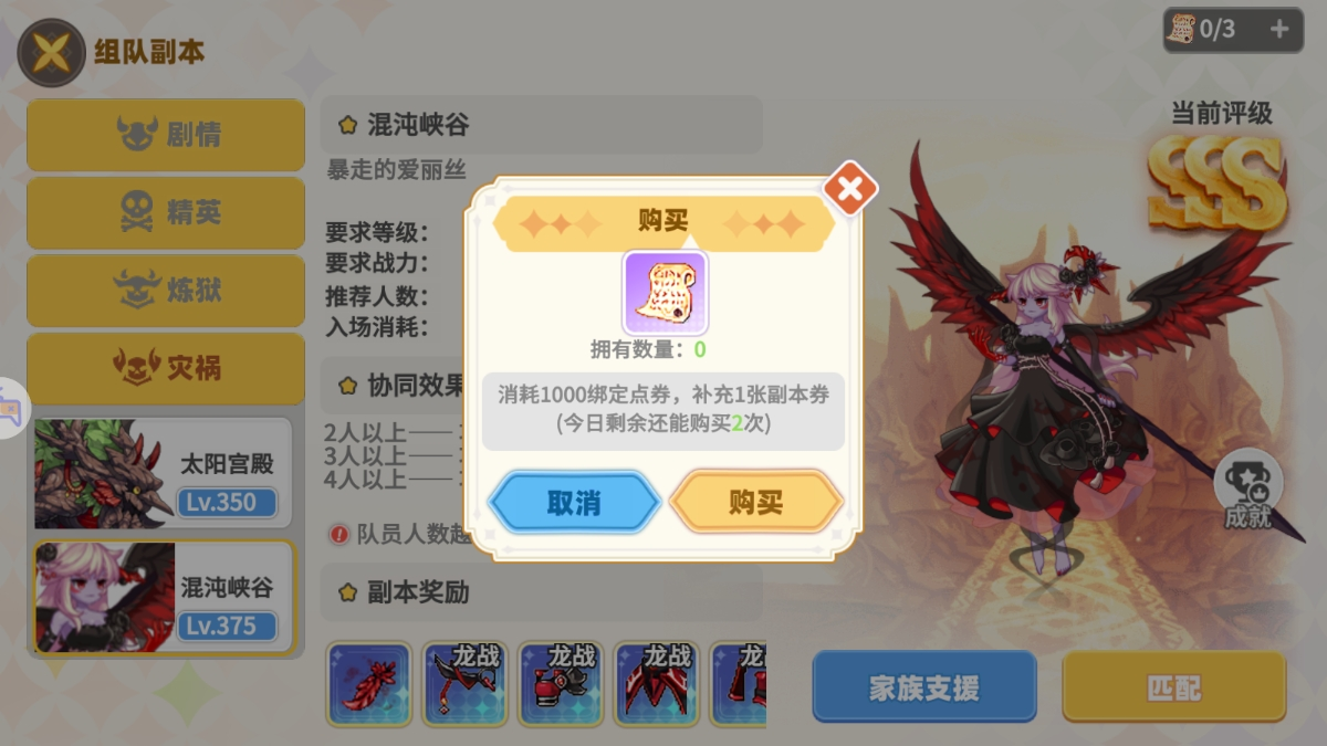組隊副本是我們每天拿活躍度的大頭。有很多種方式可以增加挑戰(zhàn)次數(shù),比如副本頁面右上角的+,每天可以增加2次,每次1000點券。